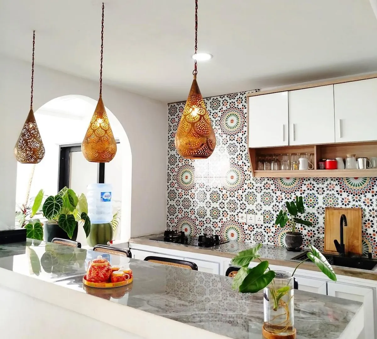 In der Villa in Jimbaran gibt es eine voll ausgestattete Küchenzeile mit einem Wasserkocher, einem Kühlschrank und Küchenutensilien, wo Gäste kochen können. Die Villa Omah H ist mit dem Auto in 20 Minuten vom Flughafen Ngurah Rai aus zu erreichen.